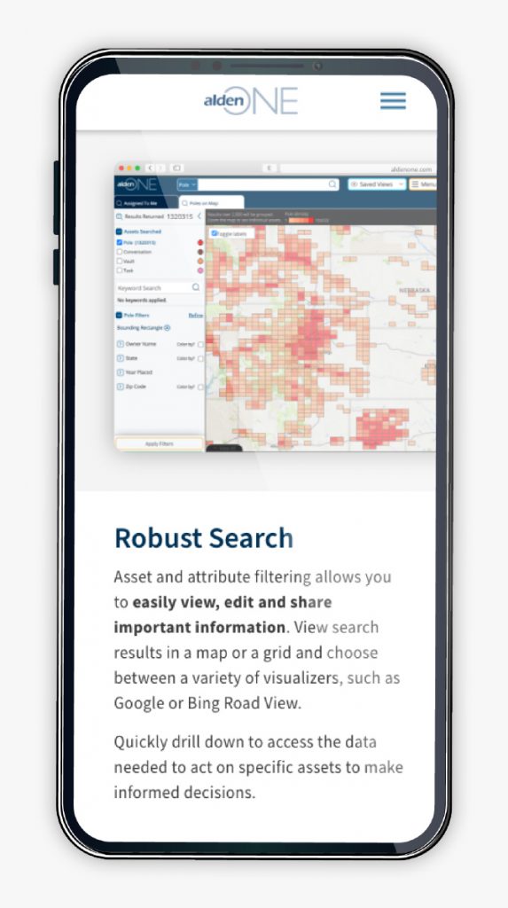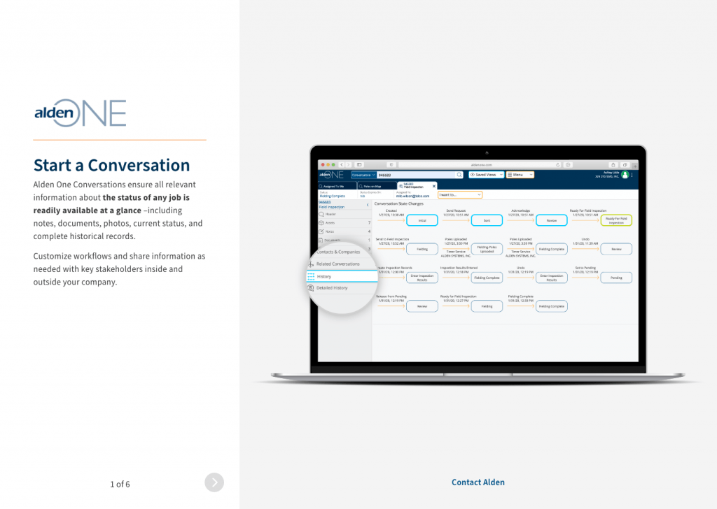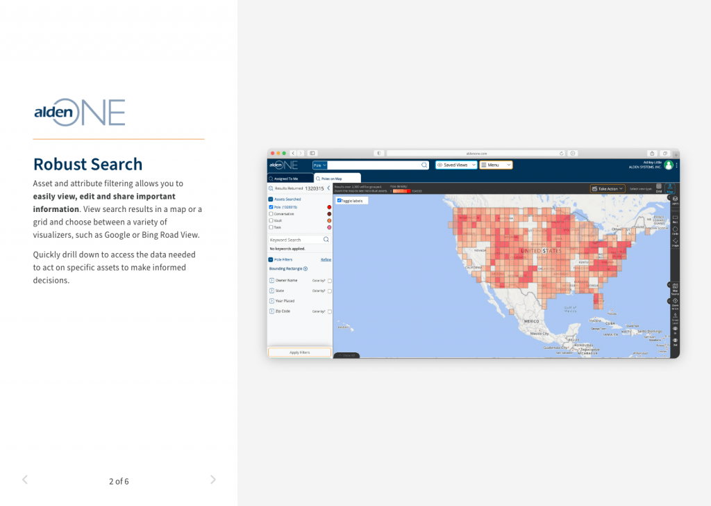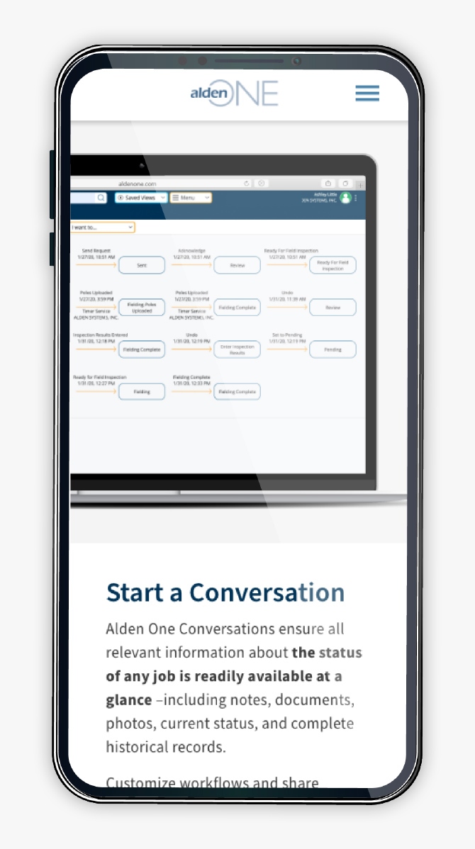 Alden was in need of a strong visualization of their Alden One Joint Infrastructure Asset Management software. This Feature Tour is meant to showcase its capabilities and a sneak peak at the interface and functionality. This was first designed in Adobe XD and then moved into development shortly after approval.