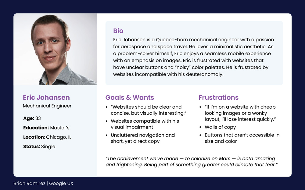 I conducted moderated and unmoderated interviews and created empathy maps to understand the users I’m designing for and their needs. A primary user group identified through research was wealthy individuals, who dreamed of space exploration.