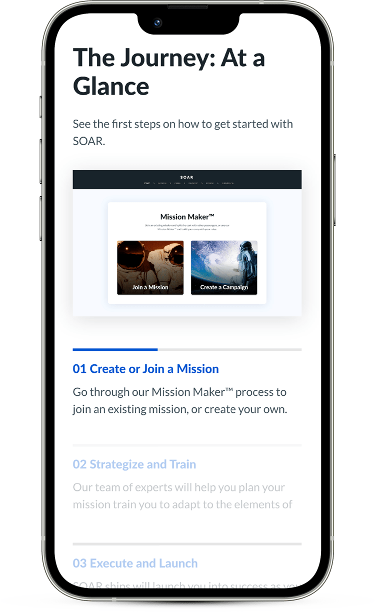 This user group confirmed initial assumptions about SOAR’s primary visitors, but research also revealed that they would like to see prices and process information as clear and concisely as possible before making a purchasing decision.