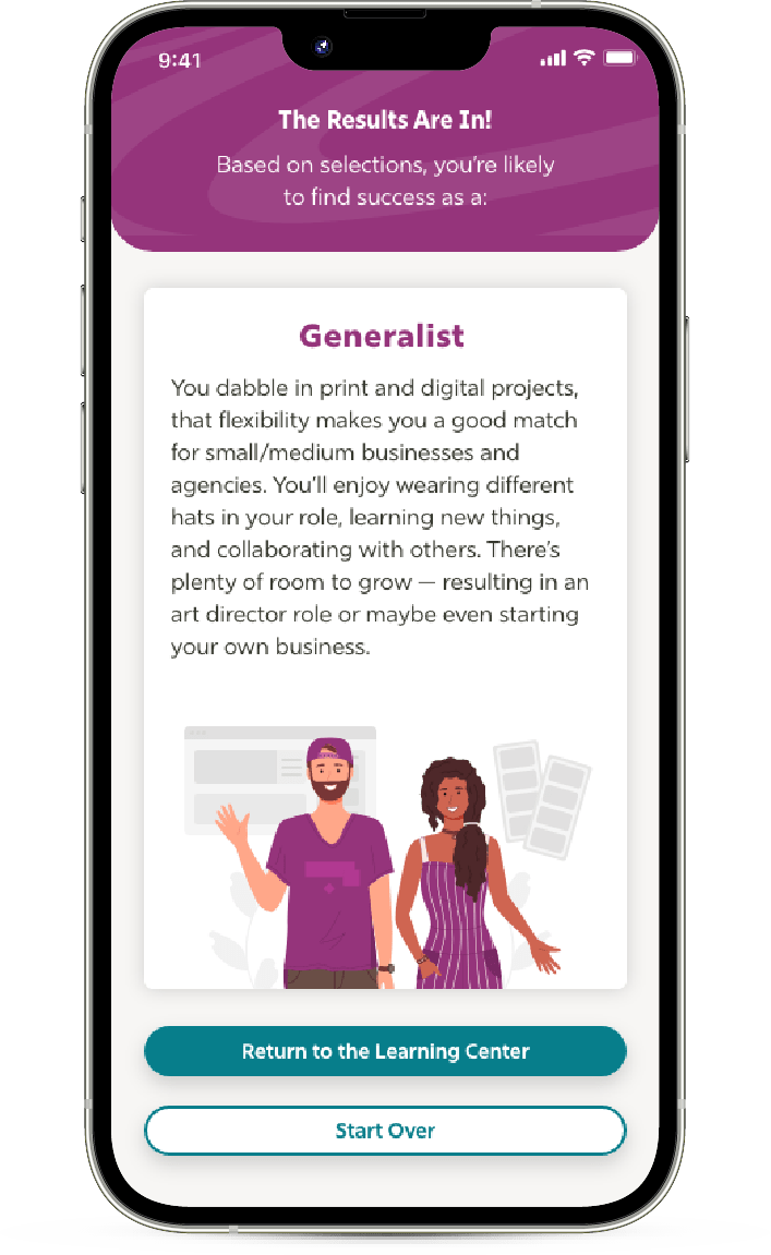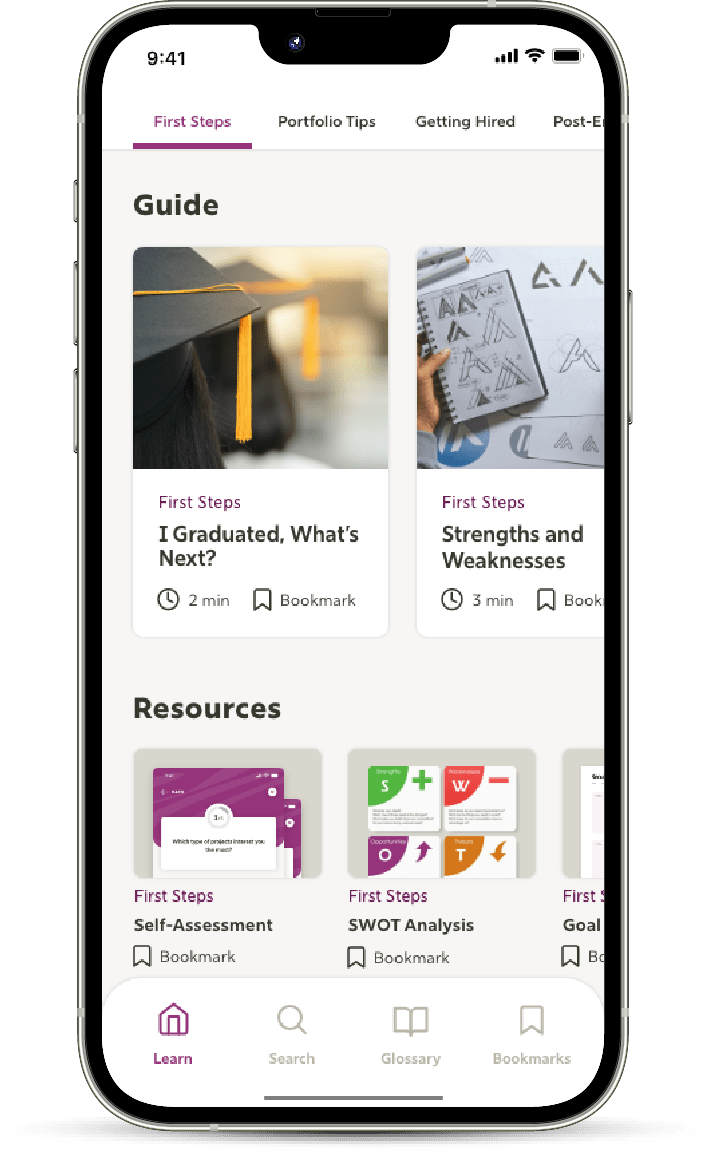 The app makes users feel ready to tackle the first steps at starting their upcoming design career.