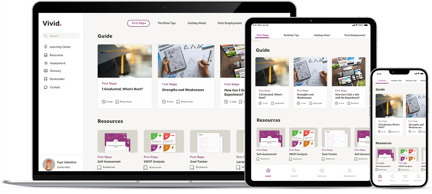 Vivid is a non-profit app containing tips, information, and resources for new designers and fresh design school graduates.