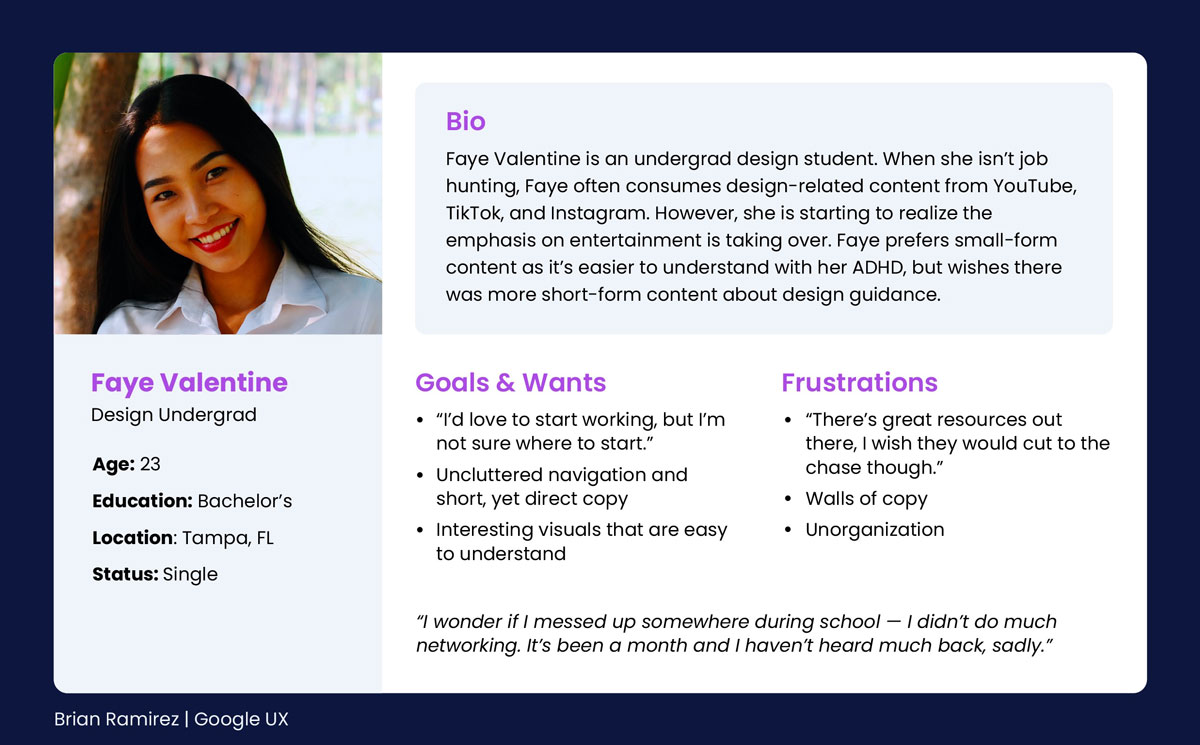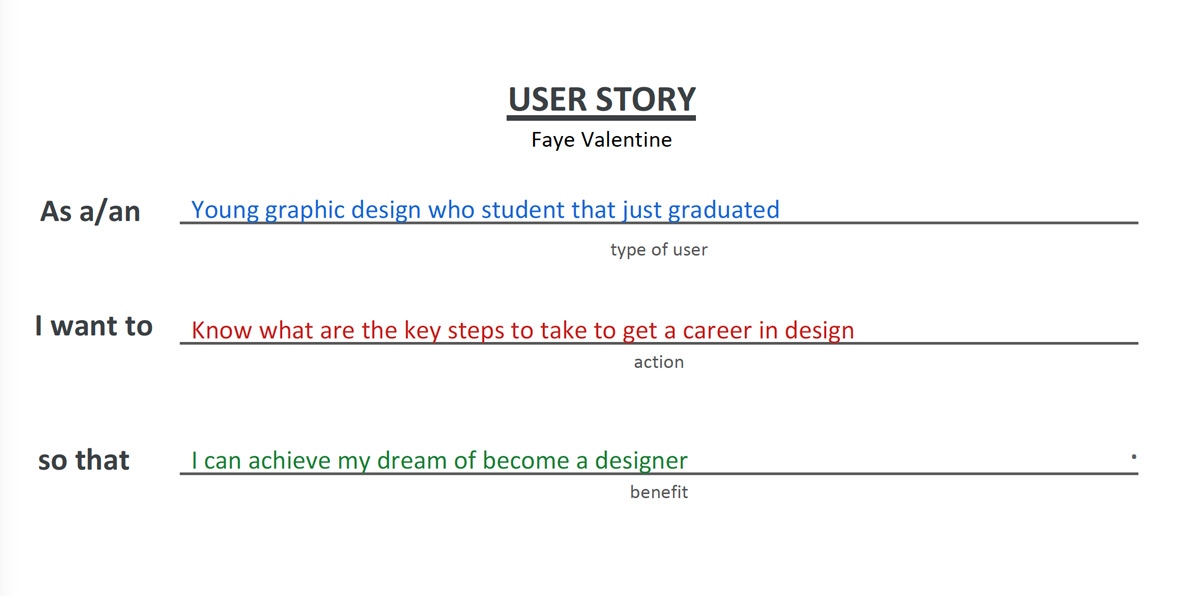 Faye Valentine’s user story provides insights on what students are looking for in terms of guidance and resources.