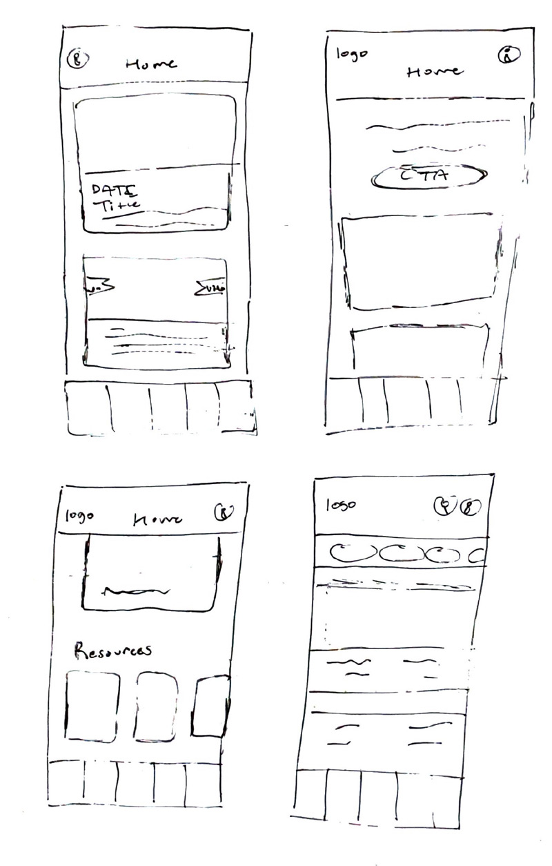Initial designs are consist of several horizontal scrolling navigations in order to conserve space. Sliding navigation breaks up the content based on type, while maintaining a familiar card-style base UI.
